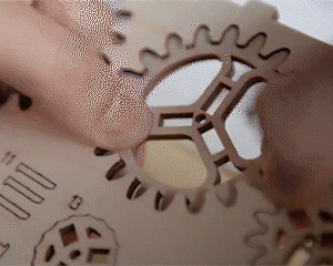 - Unique Mechanical 3D Puzzle,laser-cut ply wood material, smooth wooden board. All pieces are pre-cut, no glue needed. The interlocking mechanisms are pretty ingenious.